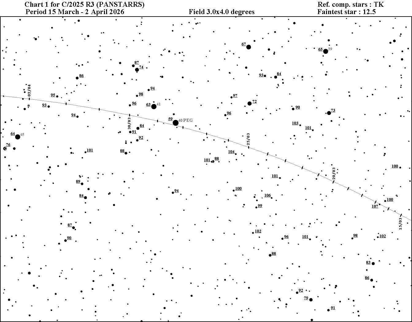 Chart 1 C/2025 R3 (PANSTARRS) period 15 March -1 April 2026